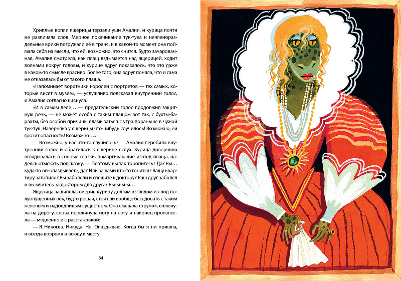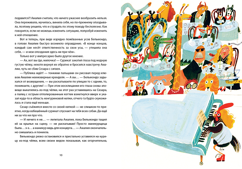 <p> Чего может не хватать современной курице, известной джазовой певице, живущей насыщенной культуркурной жизнью? </p> <p> Ну конечно же, времени! Вернее, умения с ним договариваться, чтобы перестать вечно опаздывать. Амалия постоянно гонится за ним — то на сигвее, то на гиппобусе, </p> <p> то на павлиолёте, а бывает, что и на подъёмном кране! И пока Амалия пытается ухватить время за хвост, её преследуют приключения. </p> <p> К счастью, есть верные друзья и восхищённые поклонники, которые всегда выручат звезду Лиссаслонска. </p> <p> А ещё Амалии не хватает полёта. Она мечтает парить высоко-высоко, но курицы не летают! Хотя... </p> <p> Ох-квох, ни слова больше! Амалия уже вскочила на мотороллер и мчится на концерт! Только бы опять не оп-оп-опоздать! </p>