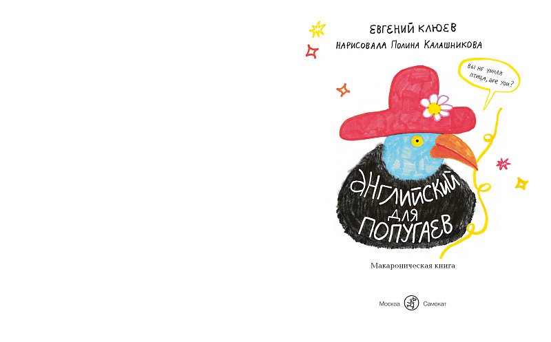 Эта макароническая книга — первый в мире учебник английского языка для маленьких попугаев. Попугаи — удивительно талантливые птицы. Им чрезвычайно легко даются языки: ведь им всё равно, на каком языке говорить, можно даже на двух сразу! Такую речь люди еще называют «макаронической». Поэтому именно для попугаев поэт Евгений Клюев и написал учебник в стихах на двух языках, а иллюстратор Полина Калашникова придумала целый виммельбух ко всем запоминающимся выражениям. Правда, читать попугаи не умеют, но зато умеют повторять, так что нам всего-то и надо, что немножко им помочь.<br> <br> Для ценителей живописи книга издана и в другой обложке — <a href="https://samtambooks.com/book/angliyskiy-dlya-popugaev-portret/"><span style="color: #000000;"><u>«Английский для попугаев. Портрет»</u></span></a>.<br> <h2>5 причин купить книгу «Английский для попугаев. Карета»:</h2> <ul> <li> <p> Макаронические стихи от Евгения Клюева; </p> </li> <li> <p> Полноценный русско-английский разговорник – вы узнаете необходимые для жизни выражения на обоих языках сразу;<br> </p> </li> <li> <p> Яркий виммельбух от Полины Калашниковой — очередь-макаронина из персонажей русской и английской жизни длится всю книгу, а некоторые герои даже появляются несколько раз;<br> </p> </li> <li> <p> Учиться по этому учебнику можно и нужно всем возрастам – и совсем маленьким, и подросткам, и взрослым;<br> </p> </li> <li>Ведь когда мы учим стихи и языки, все мы немного попугаи, aren't we? <br> </li> </ul>