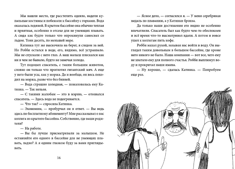 Знакомьтесь, это семья Буковски. Не вся, конечно, но значительная ее часть. По крайней мере, так они сами думают. Десятилетний Альф, спешащий штурмовать вышки и высоты. Мечтатель Робби, который больше всего на свете любит смотреть на облака. Подлинный философ, пусть и всего семи лет от роду. Ну и куда же без Катинки — взрослой не по годам сестры, которая всегда всё знает лучше всех. Этим трем счастливчикам повезло заполучить абонемент в открытый бассейн на все лето. Целое лето под открытым небом... столько всего может случиться! Первая любовь — ослепительная, как солнце; первое разочарование — горькое и саднящее; первый страх и первая победа над ним — дорогая, как золото. А еще настоящее приключение — дерзкая авантюра, о которой и подумать немыслимо.