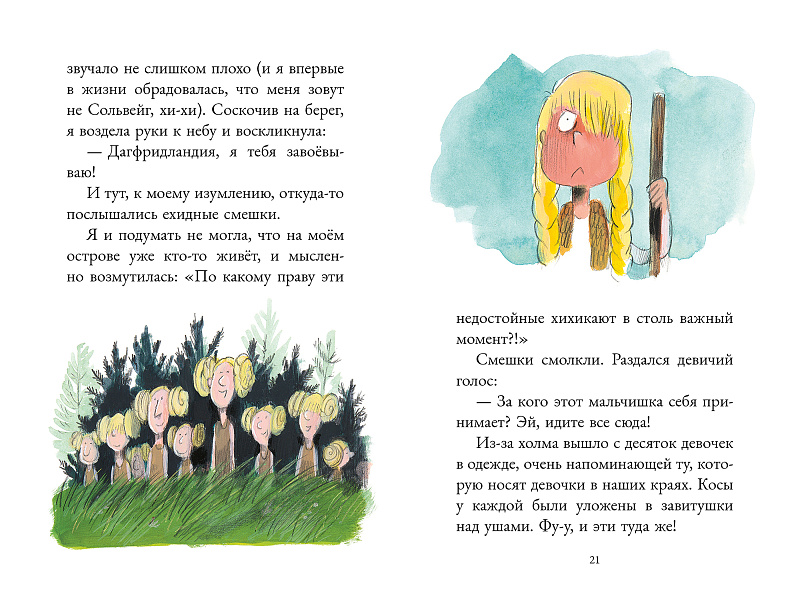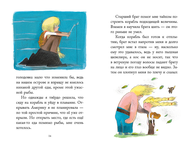 Да и в остальном участь девочки-викинга счастливой не назовёшь: приходится заплетать волосы в косы и укладывать их в завитушки над ушами, носить платья до пят и вялить рыбу, единственную пищу викингов. А ещё девочкам не разрешают выходить в море и открывать Америку! Но вечно так продолжаться не могло. Настал день, когда рыба вконец опротивела Дагфрид...