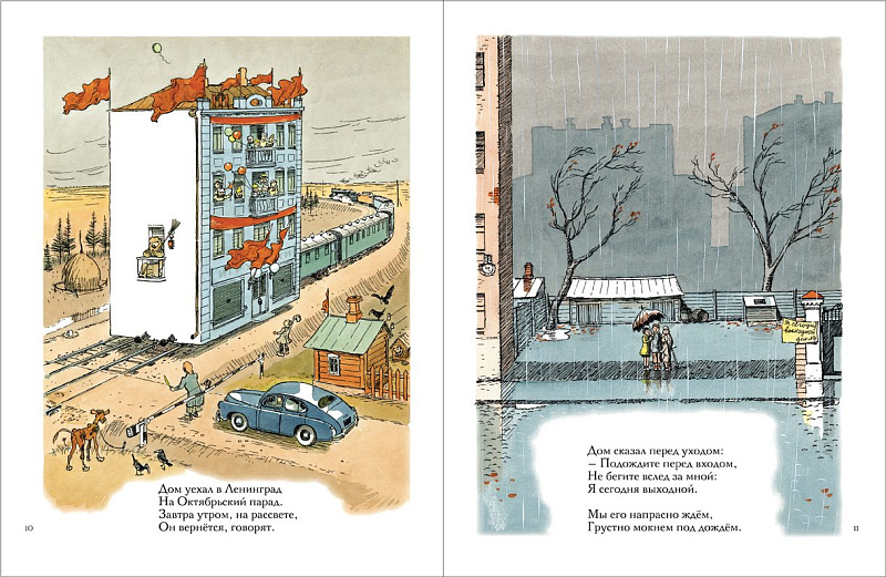 Вернувшись домой, мальчик Сёма не обнаружил дома. Куда он исчез?<br> <br> Агния Барто рассказала детям о реальном московском событии. А знаменитый художник-карикатурист Константин Ротов обыграл каждую строчку её стихотворения в весёлом сюжете.<br> <br> Большинство стихов Агнии Барто написано для детей – дошкольников или младших школьников. Стиль очень лёгкий, стихи нетрудно читать и запоминать даже малышам. Автор как бы разговаривает с ребёнком простым бытовым языком, без лирических отступлений и описаний – но в рифму. И разговор ведет с маленькими читателями, как будто автор их ровесница. Стихи Барто всегда на современную тему, она словно бы рассказывает недавно случившуюся историю.<br> <br> Стихотворение «Дом переехал» посвящено реальному событию – передвижению дома № 5/6 по улице Серафимовича в Москве, который мешал строительству Большого Каменного моста в 1937 году. Особенностью этого передвижения была необходимость подъема здания (вес 7500 тонн) на высоту 1,87 м. Тем не менее передвижка происходила без отселения жильцов.<br> <br> Великолепные юмористические иллюстрации к стихотворению Агнии Барто создал известнейший художник-график Константин Павлович Ротов. Это подробные графические «рассказы в картинках» с четким контурным рисунком, остро схваченными типажами и множеством мелких забавных деталей.<br> <br> «В рисунках Ротова ребенку было все чрезвычайно интересно. Я помню до сих пор свои детские впечатления, особенно от стихотворения «Дом переехал». Чуть не каждую строчку этого стихотворения (1938 год — в этом году впервые вышла книга с иллюстрациями К. Ротова) художник обыгрывает в веселом сюжете. Вернувшийся из лагеря пионер Сема – бодрый мальчишка. В руке сачок, на груди фотоаппарат в футляре, энергичная поза – таков его реквизит и характерная примета»<br> <br> Лидия Кудрявцева «Собеседники поэзии и сказки: Об искусстве художников детской книги», М., 2008<br>