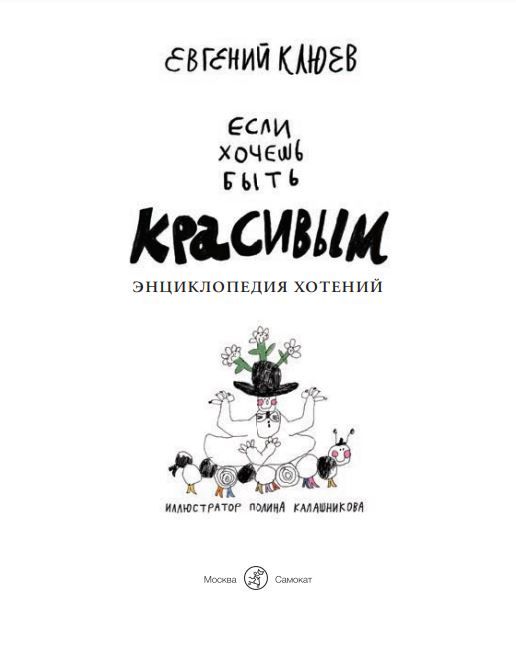 Каждая его новая книга – событие не только радостное, но и волнительное: никто не знает, бу-дут ли это стихи или проза, художественное произведение или научный труд. «Энциклопедия хотений» («Если хочешь быть красивым») объединяет в себе всё перечисленное! Ведь статьи этой энциклопедии – стихи, написанные легко и виртуозно, а пояснения и примечания к ним своей научностью и серьёзностью удивят и восхитят даже самых серьёзных. И, как всегда у Клюева, слова и смыслы перетекают друг в друга и становятся языковой игрой, в которую с удовольствием вовлекаются читатели всех возрастов. А безбашенные, невероятно смешные иллюстрации Полины Калашниковой добавляют энциклопедии ещё больше абсурдности.