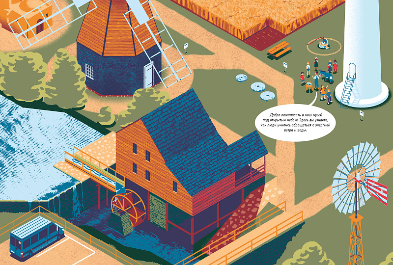 • Книга расскажет про разные виды мельниц, когда они появились, какие энергии они преобразуют в движение или в другие энергии, и какое сырье могут обрабатывать;