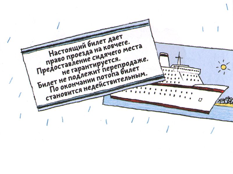 Тут и происходит все слишком быстро, чтобы углубляться в разговоры — не успел ковчег вдоволь поплавать, а книга уже закончилась. В чем-то — ну хотя бы по части признания божественных ошибок — хулиганская, и во всем нечеловечески смешная, эта история сводится в итоге к поучениям не столько религиозным, сколько общечеловеческим: жизнь прекрасна, своих не бросают, потоп был лишним, а миром правит любовь.