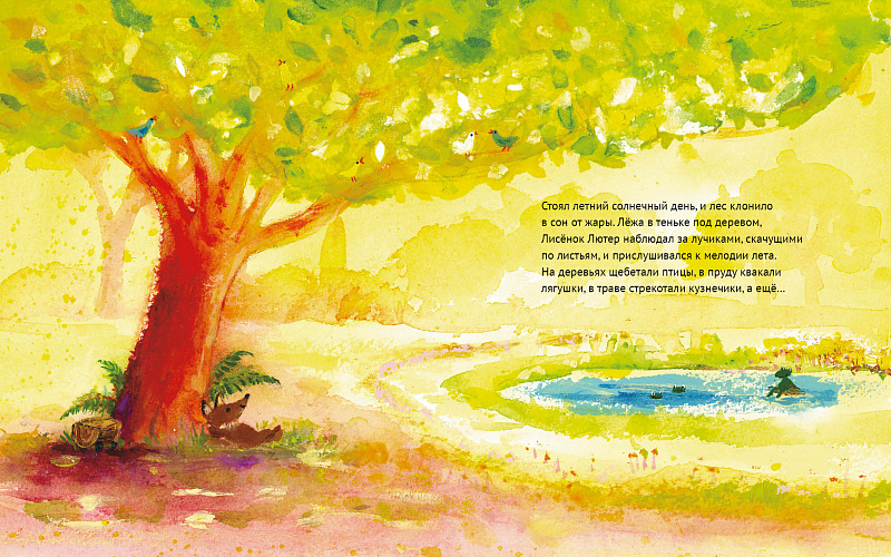 Наконец-то лето! Можно целый день лежать в тени деревьев и слушать, как щебечут птицы, квакают лягушки и стрекочут кузнечики. Но подождите, кто это плачет? Это Зайчишка, она расстроилась, потому что ничего не умеет: ни щебетать, ни квакать, ни стрекотать. Лисёнок Лютер уверен, что всему можно научиться. Вместе они устроят великолепное представление!