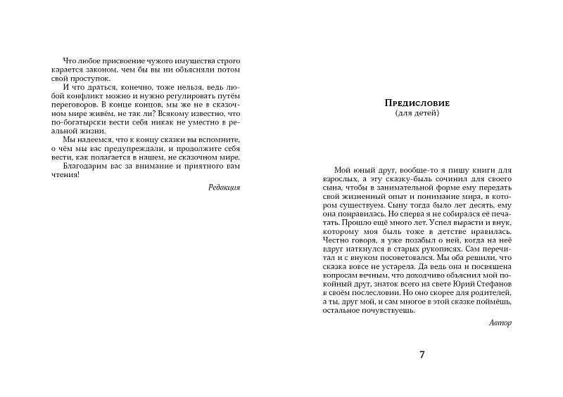 Вообще-то, я пишу книги для взрослых, а эту сказку-быль сочинил для своего сына, чтобы в занимательной форме ему передать свой жизненный опыт и понимание мира, в котором существуем. Сыну тогда было лет десять, ему она понравилась. Но сперва я не собирался ее печатать. Прошли годы, сын уже вырос, когда я сообразил, что, может быть, сказка и другим детям будет интересна. В результате, она вышла в сборнике фантастики, но это, конечно, было не то чего я бы хотел. Сказки надо издавать красиво, празднично, с яркими иллюстрациями. Прошло еще много лет. Успел вырасти и внук, которому моя быль тоже в детстве нравилась. Честно говоря, я уже позабыл о ней, когда среди старых журналов вдруг наткнулся на тот самый сборник. Сам перечитал и отдал на «экспертизу» уже подросшему внуку. Мы оба решили, что сказка вовсе не устарела. Да ведь она и посвящена вопросам вечным, что доходчиво объяснил мой покойный друг, знаток всего на свете Юрий Стефанов в своем послесловии. Оно адресовано скорей взрослым, а умный ребенок и так всё поймет или почувствует.