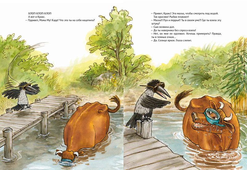 - Мама Му осваивает маску для плавания, а Кракс строит гоночную лодку.