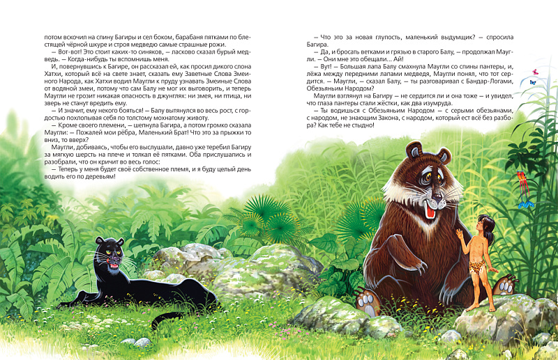 Весь мир знает про Маугли, индийского мальчика, воспитанного в волчьей стае. Этой истории уже более ста лет, однако интерес читателей к судьбе человеческого детеныша ничуть не ослабевает. Мудрый волк Акела, добродушный медведь Балу, отважная пантера Багира — все учителя и верные друзья Лягушонка Маугли готовы поведать о Законе джунглей каждому, кто откроет эту книгу.