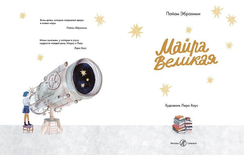 Книжка-картинка «Майра Великая» молодого иранского писателя Пайама Эбрахими написана не только для детей — достигаторов и покорителей. Взрослые тоже считают себя покорителями вселенной — пока не осознают, что рядом с ними есть и другие миры. Им кажется, что они дошли до конца, но на деле они возвращаются к истокам. И там, у истоков, есть кто-то мудрее и глубже их.