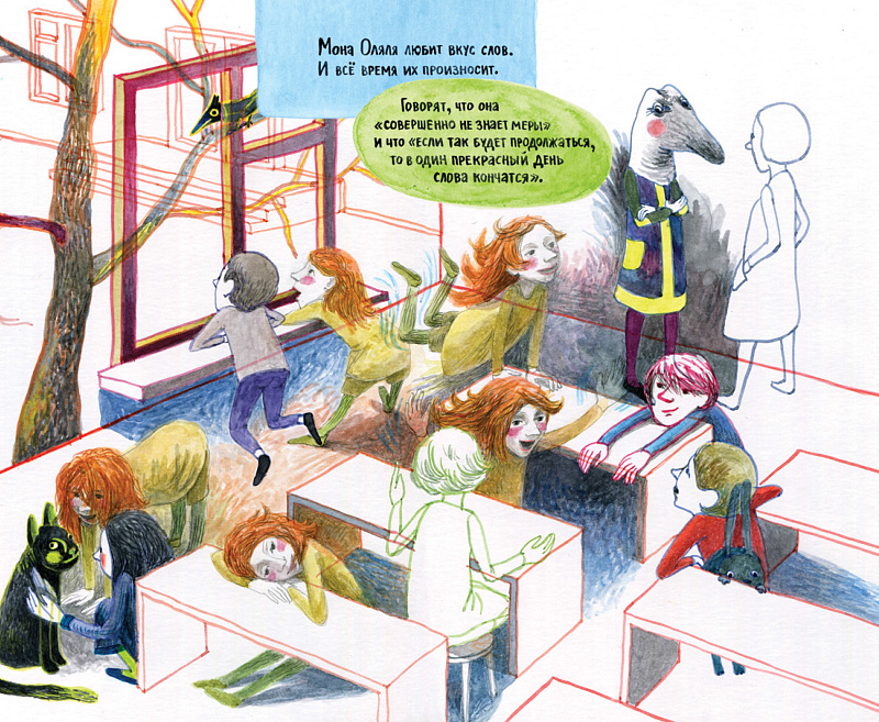 Элен и Варваре и правда удалась в полном смысле слова необыкновенная история, в которой герои за несколько страниц переживают настоящее перерождение, а их мир, еще совсем недавно серый и будничный, вдруг расцветает всеми цветами радуги — и все благодаря буквам! Здесь нет ничего случайного, ничего лишнего: каждая буква, каждый звук играет свою неповторимую роль. Великолепный пример того, как текст и изображение не просто дополняют друг друга, а переплетаются в единую художественную ткань, где одно неотделимо от другого.