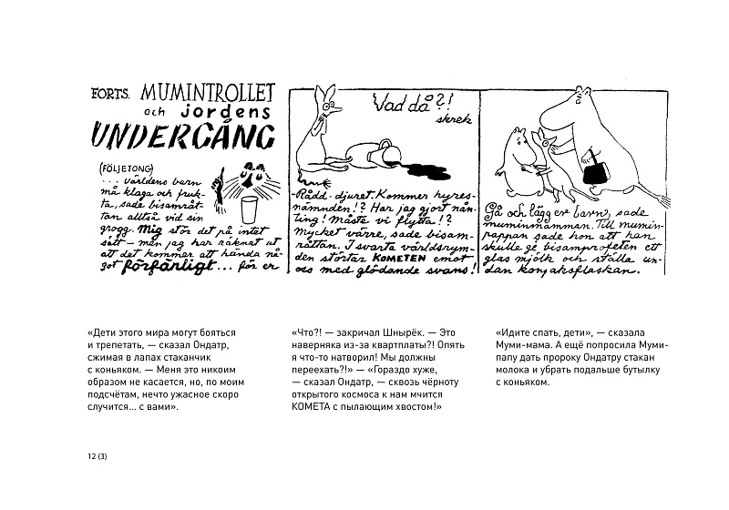 А в 1946 году вышла ее первая книга «Комета прилетает» («Погоня за кометой») ― не считая выпущенной в 30-е годы брошюрки «Маленькие тролли и большое наводнение». Последняя книга Янссон про муми-троллей появилась в 1970 году. К этому времени их набралось больше десяти, а в виде комиксов, опубликованных в газетах ― 1500. По всей вероятности, это было как раз то количество, которое могло удовлетворить интерес детской публики к муми-троллям. Сейчас книги про них читают более чем на 30 языках мира.