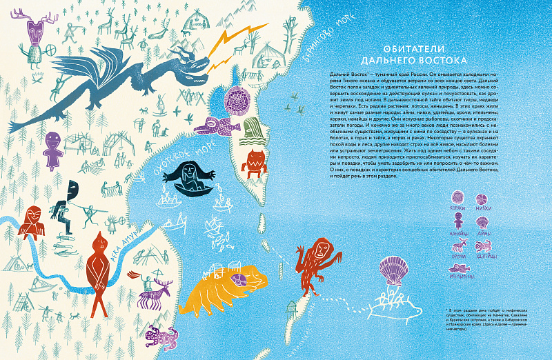 Вездесущие, своенравные, реальные и вымышленные — обитатели Сибири и Дальнего Востока пришли в эти земли давным-давно. Они родились из историй, которые передавались из поколения в поколение, росли и крепли вместе с человеком. По сей день эти создания прячутся на болотах, таятся в густых лесах, властвуют над стихиями. Некоторые мирно соседствуют с людьми, а у иных характер такой скверный, что подружиться с ними так и не удалось. Их фантастическая внешность и незаурядные способности пленяют наше воображение. Хочется увидеть своими глазами железную птицу или крылатого тигра, пока они совсем не исчезли… А не увидеть, так хотя бы послушать истории о них.