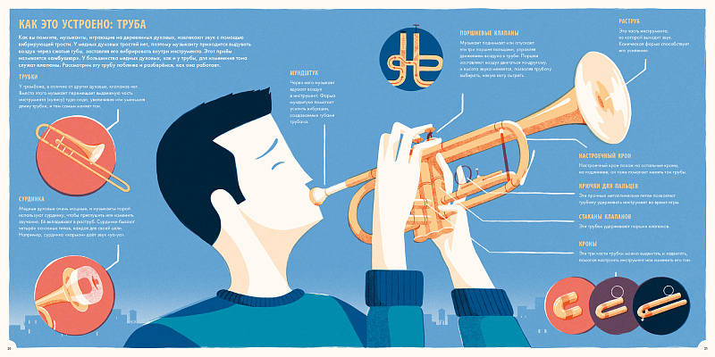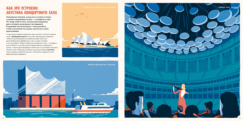 Как устроен оркестр и на какие группы делятся музыкальные инструменты? Что значит «читать ноты» и как сочиняют музыку? Из чего состоят скрипка, труба и кларнет? Чем орган отличается от пианино? Почему так важна акустика концертного зала?