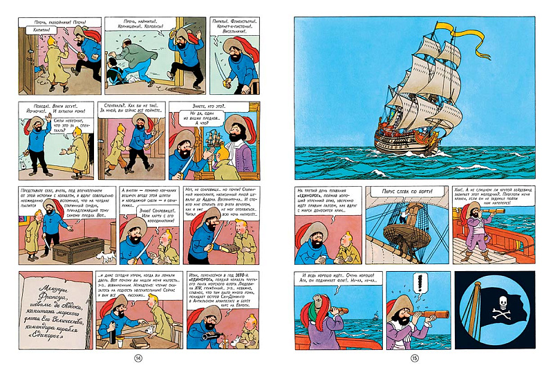 Гуляя по блошиному рынку, Тинтин видит модель старинного парусника и решает подарить его своему другу капитану Хаддоку. Капитан приходит в восторг, ведь это точная копия «Единорога» — судна, которым командовал его славный предок Франсуа де Аддок. В конце XVII века пираты во главе с Красным Раккамом захватили корабль, но капитан де Аддок взорвал его, чтобы гордый фрегат Его Величества короля Людовика XIV не достался флибустьерам. Корабль затонул в тихой бухте у безымянного острова, а с ним и все сокровища, которые успели перетащить пираты со своего подбитого шлюпа. Сам же шевалье де Аддок спасся и своим сыновьям он завещал три миниатюрные копии «Единорога» с секретом. Этот секрет и пытается разгадать Тинтин. Но, как выясняется, не он один…<br> <br> «Приключения Тинтина» — известная во всем мире серия комиксов бельгийского художника Жоржа Реми, работавшего под псевдонимом Эрже. Рискуя жизнью, отважный репортер Тинтин расследует загадочные происшествия, но из всех передряг выходит победителем. И что бы ни случилось рядом всегда его верный друг — белоснежный фокстерьер Милу.<br> <br> Комикс «Секрет «Единорога»» увидел свет в 1943 году. Приступая к работе над ним, Эрже впервые задумался о приключении в двух томах, ведь, при всей очевидной связи, альбомы «Сигары фараона» и «Голубой лотос» выглядят как вполне самостоятельные истории, которые можно читать даже в обратной последовательности, не теряя нити повествования. Здесь же перед нами классическая дилогия, в первой части которой герои разгадывают секрет затонувшего корабля, а во второй («Сокровище Красного Раккама») отправляются на поиски сокровищ, предположительно находящихся на его борту.<br>