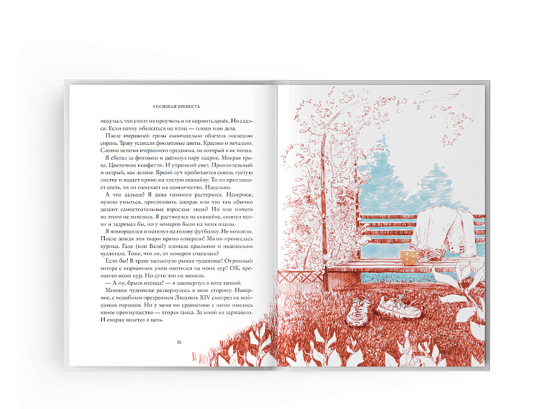 Когда тебе четырнадцать, то дикая жизнь на даче — это настоящее приключение! Герой этой повести впервые остаётся в полном одиночестве, присматривает за хозяйством, пока вся семья жарится в душном летнем городе. Но у него с собой чистый скетчбук, который можно наполнить рисунками, и старый дедовский фотоаппарат на тридцать шесть кадров. Идиллию дачного одиночества слегка нарушает приезд лучшего друга, но с ним даже интереснее гонять на великах по посёлку и купаться в озере. В одной из таких поездок друзья обустраивают собственное секретное логово, Сосновую крепость.