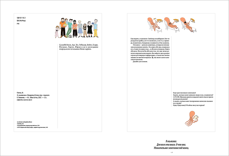 Главная героиня книги, мудрая осьминожка, давно знакома с миром людей: за многие века на морском дне образовался уже целый музей человеческих изобретений. Офисные стулья, пылесосы, мобильные телефоны, рыболовные сети, журналы и кредитные карты — все это вызывает у нее интерес. Осьминожка мечтает познакомиться с людьми поближе и разгадать все тайны человеческого вида. Сходить на концерт. Попробовать тост с авокадо. И, главное, понять, что такое настоящая дружба.